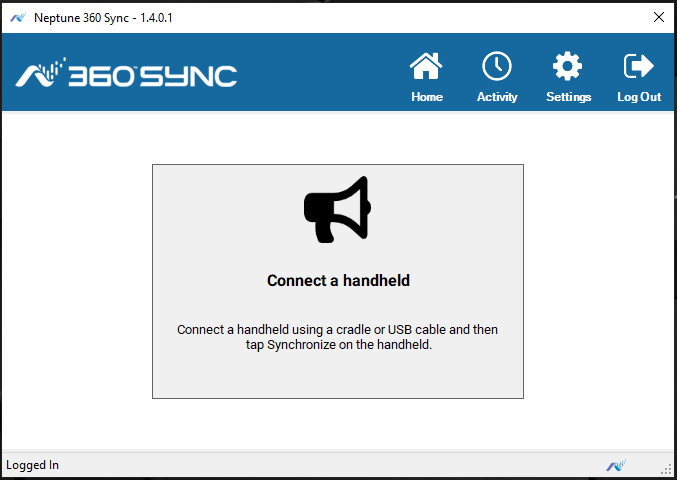- Click Log Out to log your account out of Neptune 360 Sync and redisplay the login window. You cannot sync any connected handhelds unless you are logged in to Neptune 360 Sync.